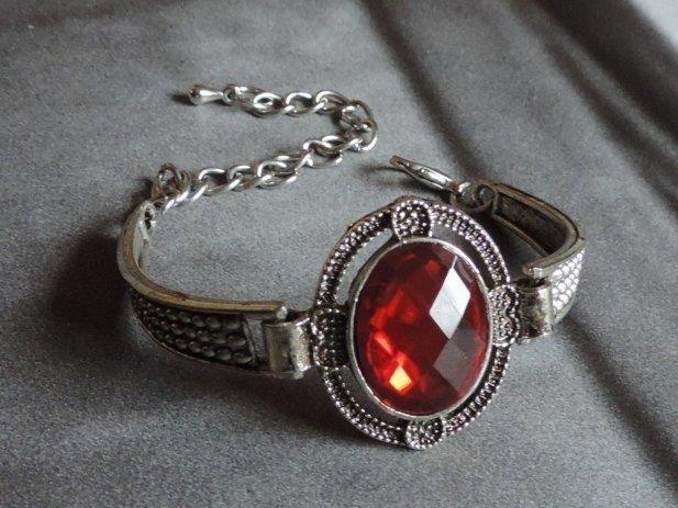 Narukvica od tibetanskog srebra-crveni prozirni kamen