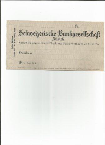 Schweitzerische Bankgesellshaft Zurich - check no 651754