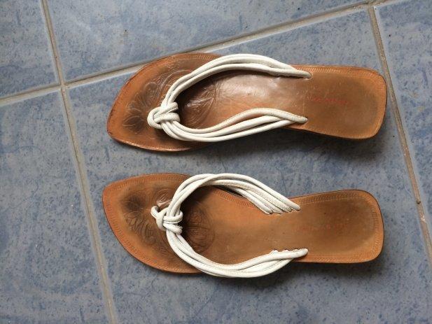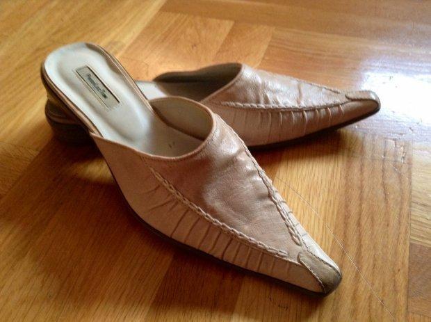 Smeđe kožne japanke, nošene jednom (prevelike) br.40. Brand Betty Berklay. Na slici su dekorativne mrlje na tabanici od proizvođača, nipošto od nošenja.